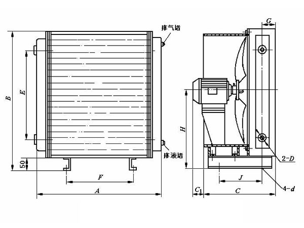 FL型空氣冷卻器是液壓系統常用的一種空氣熱交換器。采用環境空氣作為冷卻源,用來冷卻管內熱油,屬于風冷式空氣冷卻器,以“風冷”的第一個字母命名,以換熱面積作為后綴。如FL-5,即表示該型號為風冷形式,換熱面積為5平方米。